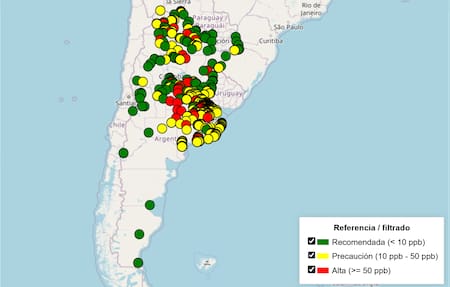 El mapa puede consultarse en mapa-de-arsenico.web.app. Según la investigación, las provincias más afectadas con este contaminante son Buenos Aires y Córdoba.