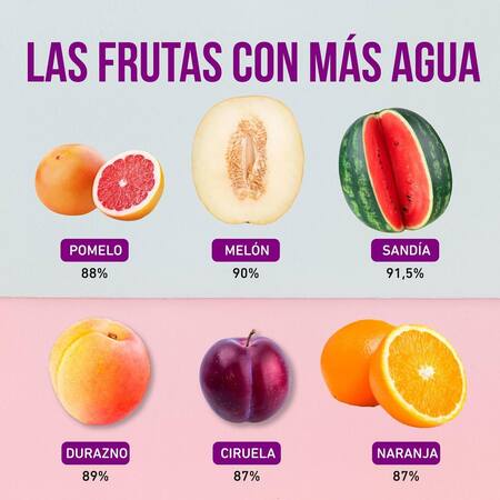 Entre las frutas que más contenido de agua aportan se encuentran: