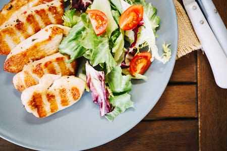 - Almuerzo: Pechuga de pollo con ensalada de verdes y lentejas