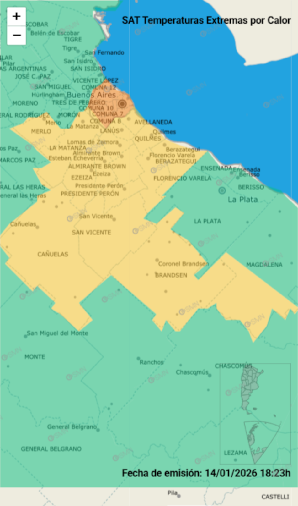 Un punto a tener en cuenta es que el Servicio Meteorológico Nacional mantiene su alerta activa por la fuerte ola de calor. Si bien gran parte del AMBA se encuentra bajo advertencia de color amarillo, en la Ciudad de Buenos Aires se aumentó a naranja, lo que implica mayores riesgos.