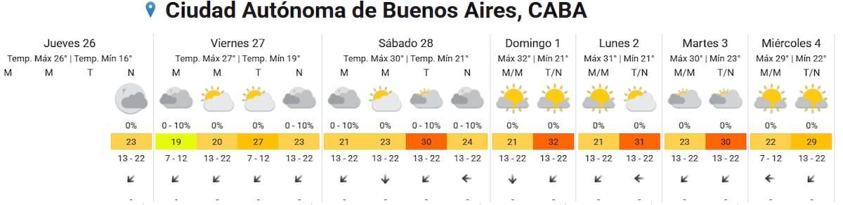 Durante toda la semana no se esperan precipitaciones, por lo que el tiempo estable acompañará el ascenso de las marcas térmicas. Así, quienes estaban esperando el regreso del calor intenso en la Ciudad ya pueden prepararse: el verano vuelve a hacerse sentir desde el domingo y especialmente el lunes.
