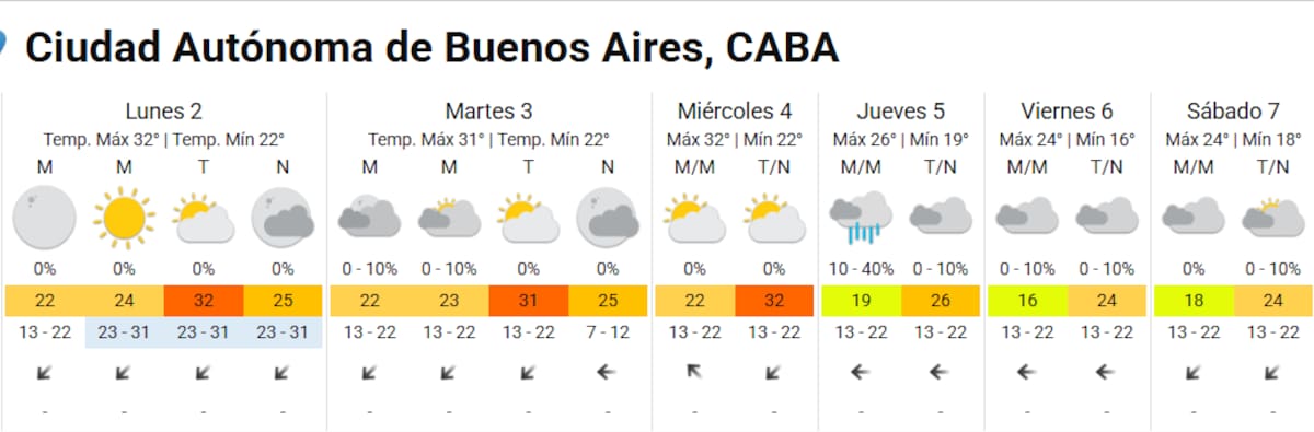 Pronóstico extendido para la Ciudad de Buenos Aires