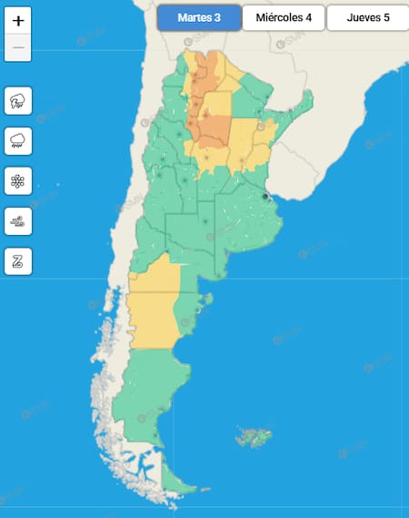 Además, gran parte del centro argentino —incluida la región pampeana— permanece bajo alerta amarilla por tormentas y lluvias intensas. Si bien los fenómenos serían menos complicados que en el norte, podría registrarse bastante agua acumulada y complicaciones puntuales, sobre todo en áreas urbanas que no tienen un drenaje correcto.
