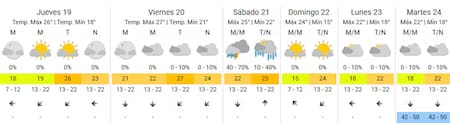 El sábado será el día más húmedo e inestable del fin de semana XXL. El SMN anticipa precipitaciones que podrían extenderse durante gran parte de la jornada, acompañadas de condiciones de alta humedad. Las temperaturas descenderán levemente, con marcas entre 22 °C y 25 °C.