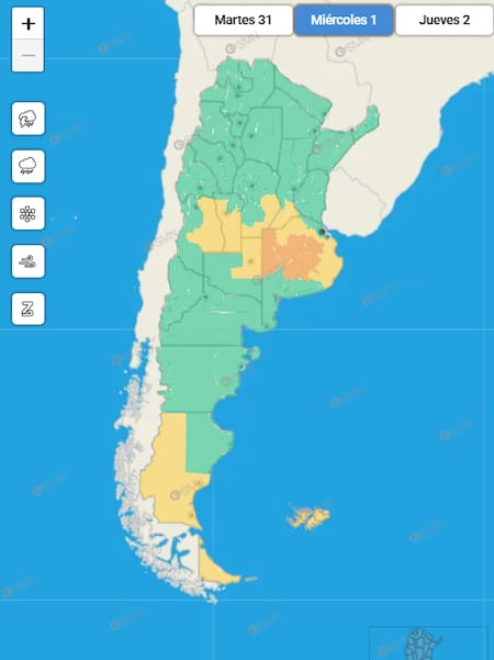 El mapa de alertas del Servicio Meteorológico Nacional para este miércoles 1 de abril muestra advertencias de distinto nivel en buena parte del país, con especial atención sobre el centro y el litoral argentino, donde rigen alertas amarillas y naranjas por fenómenos meteorológicos que podrían generar complicaciones.