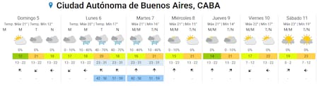 Según el pronóstico para Ciudad Autónoma de Buenos Aires, las lluvias regresan el lunes 6. Durante esa jornada, la probabilidad de precipitaciones aumentará con el correr de las horas: por la mañana se mantiene baja, que sería entre 0 y 10%, pero hacia la tarde aumentará la probabilidad entre un 40 y 70%, y por la noche continúa con chances similares.