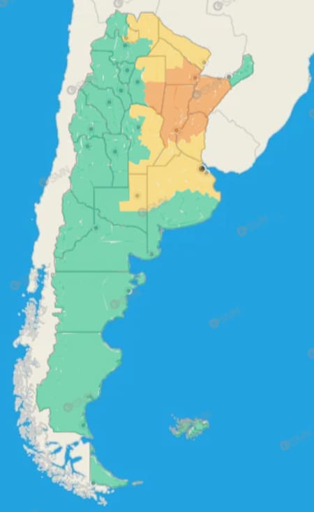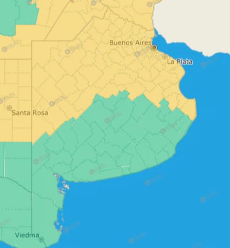 Además de Buenos Aires, las provincias bajo alerta amarilla para este lunes son: