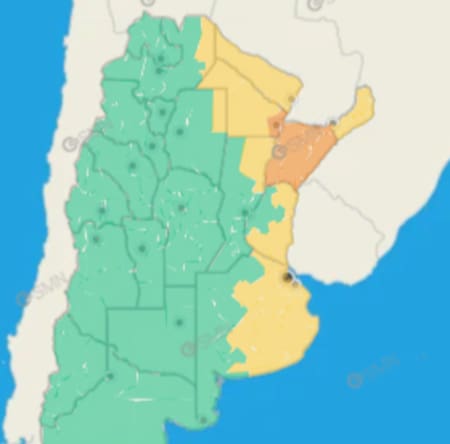 Las precipitaciones van a afectar este martes también buena parte del centro y noreste del país, donde rigen alertas por tormentas emitidas por el SMN. En esa línea, las provincias afectadas son: Buenos Aires, Entre Ríos, Corrientes, Misiones, Chaco y Formosa, así como también sectores de Santa Fe, Santiago del Estero y Salta.