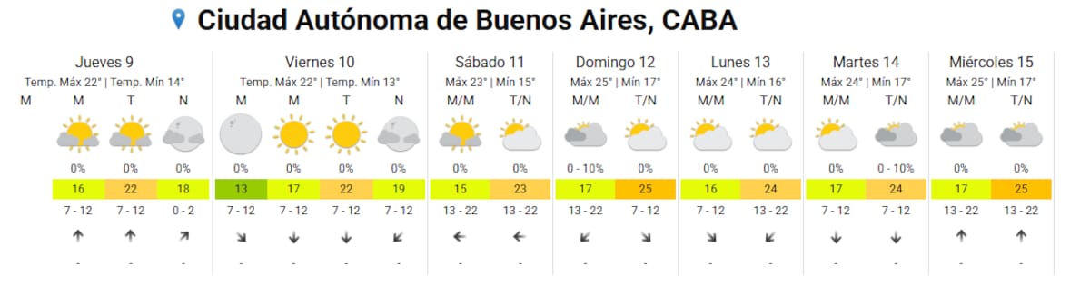 Para esa jornada se espera una temperatura máxima de 22 grados y una mínima de 13, con cielo despejado y sin probabilidad de precipitaciones.