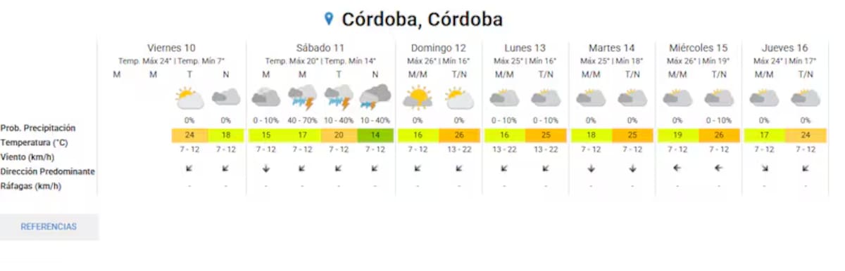 - Córdoba capital: alta probabilidad de lluvias durante buena parte de la jornada, con registros que podrían intensificarse por la tarde y la noche.