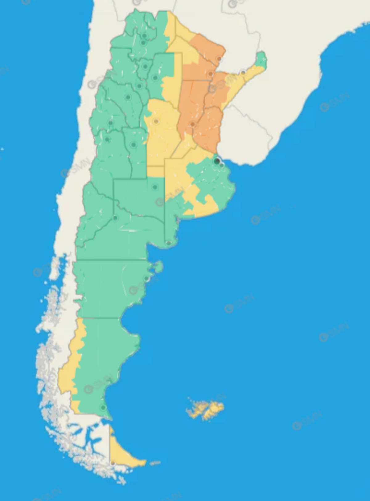 Además del AMBA, rigen alertas amarillas y naranjas en distintas provincias de la Argentina, principalmente en el noreste.