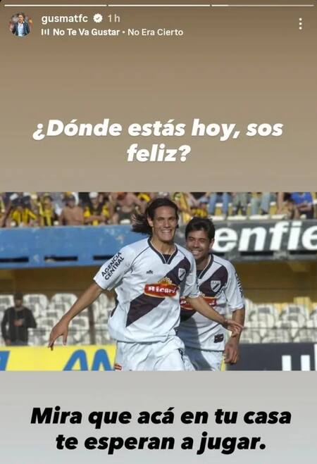 A través de una historia en su cuenta de Instagram, Matosas compartió una imagen de Cavani en sus años como jugador del club y escribió: “¿Dónde estás hoy, sos feliz? Mirá que acá en tu casa te esperan para jugar”.