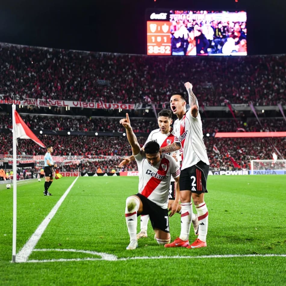 River llegó al gol en su primer ataque del partido. A los seis minutos, el delantero Facundo Colidio recibió un pase filtrado del defensor Paulo Díaz, encaró a su marcador desde el costado izquierdo y salió para la pierna derecha, con la que metió un gran remate con efecto al segundo palo, que entró por el ángulo.