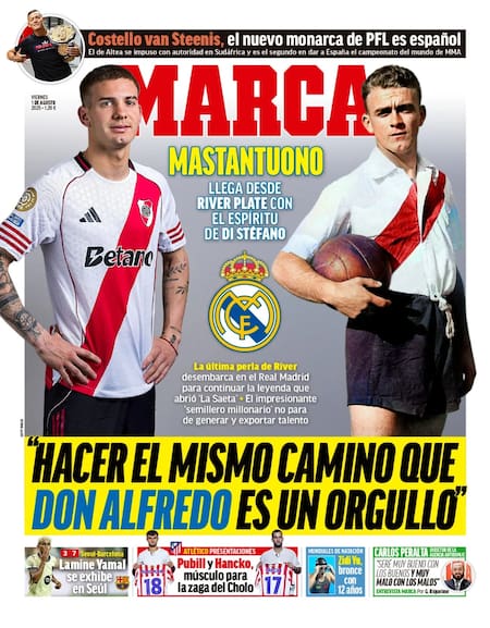 “Hacer el mismo camino que Don Alfredo es un orgullo para quien nació en River Plate”, afirmó en diálogo con Marca, en referencia a Di Stéfano, máximo ídolo de la historia del “Merengue” que se formó en el “Millonario”.