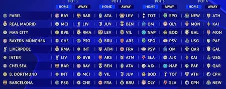 De esta manera, la UEFA definió el fixture completo de los 144 partidos. Cabe señalar que la fase de liga se disputará entre el 16 de septiembre y 28 de enero, con todos los partidos de la última fecha en simultáneo.