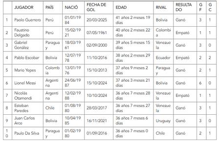 El astro argentino no se podrá convertir en el goleador más veterano de las Eliminatorias CONMEBOL. Un hito histórico que posee el delantero peruano Paolo Guerrero: un gol con 41 años, 2 meses y 19 días.