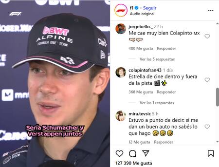 En los comentarios en redes sociales se destacaban mensajes como: “Se va a terminar adueñando de toda la Fórmula 1 si sigue así“, ”Estrella de cine dentro y fuera de la pista“, y ”¡Te queremos Franquito!“.