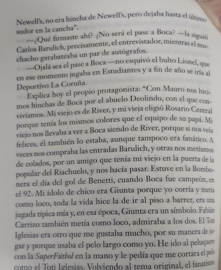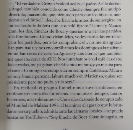 En la biografía, Carlos Barulich, uno de los entrevistados por Borinsky, relata: “Lionel y Mauro (su hermano) eran, los dos, hinchas de Boca y querían ir a ver los partidos a La Bombonera. Como vivían lejos, yo les sacaba las entradas para los partidos, pero las compraban, eh, no me mangueaban para nada, y nos encontrábamos los domingos a la mañana en un bar cerca de casa, en Agüero y Las Heras, que también me quedaba cerca de ATC. Nos juntábamos en el café, les daba las entradas, me pagaban, charlábamos un rato, y yo me iba para el canal”.