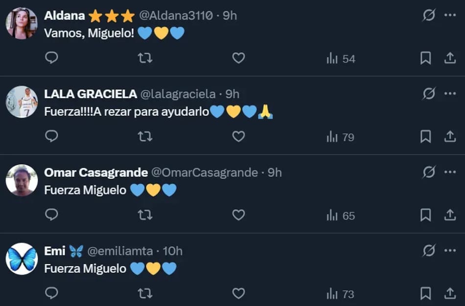 Por último, uno de los mensajes más emotivos: “Mucha fuerza, Miguel. Todo se cura con amor, como vos nos enseñaste. El hincha de Boca te ama y no somos los únicos. Cualquier otra palabra, idea o comentario, sobra”.