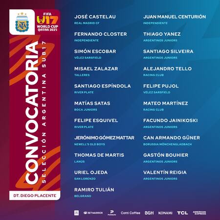 La lista de convocados de la Selección Argentina para el Mundial Sub 17 de Qatar