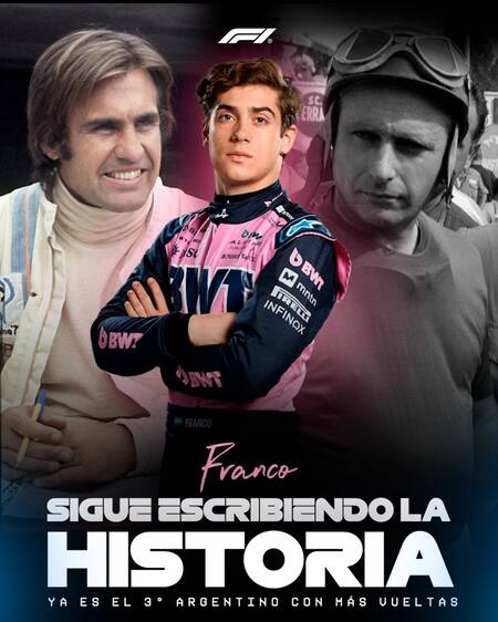 Sin embargo, después de la noticia de su renovación con Alpine para la próxima temporada, es muy probable que Franco tenga la chance de superar a Fangio (3.022) y treparse al segundo escalón de los pilotos argentinos con más vueltas en la máxima categoría.