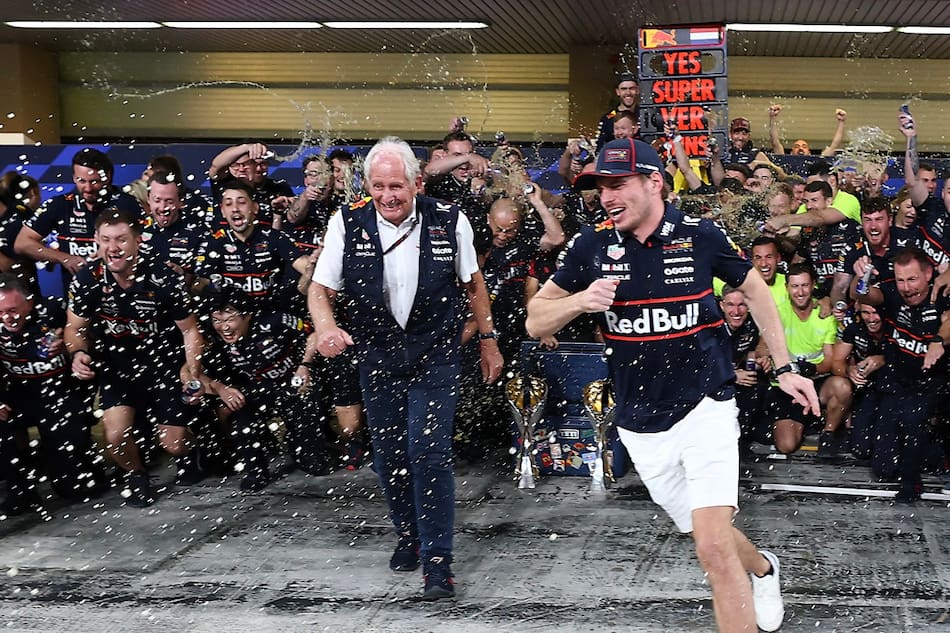 La cuenta oficial de Red Bull eligió una foto del festejo de la victoria de Verstappen en el Gran Premio de Abu Dhabi junto a Marko. “20 años, 417 carreras, 6 campeonatos de constructores, 8 campeonatos de pilotos”, destacó la escudería.