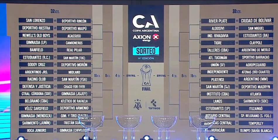 Luego del sorteo de los torneos Apertura y Clausura, este miércoles se definió el cuadro de la Copa Argentina 2026.