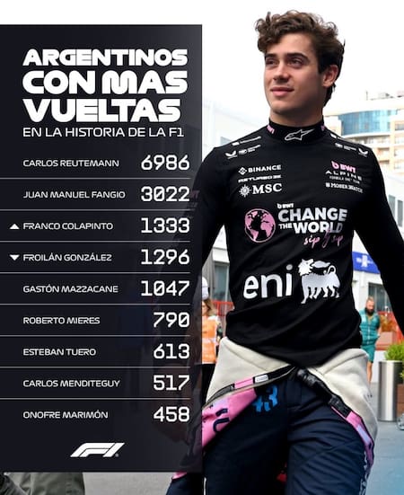 Después del GP de Las Vegas, Colapinto se convirtió en el tercer argentino con más vueltas en la máxima categoría del automovilismo, ya que alcanzó las1.333 vueltas y superó las1.296 que, ostentaba hasta ese momento, el emblemático Froilán González.