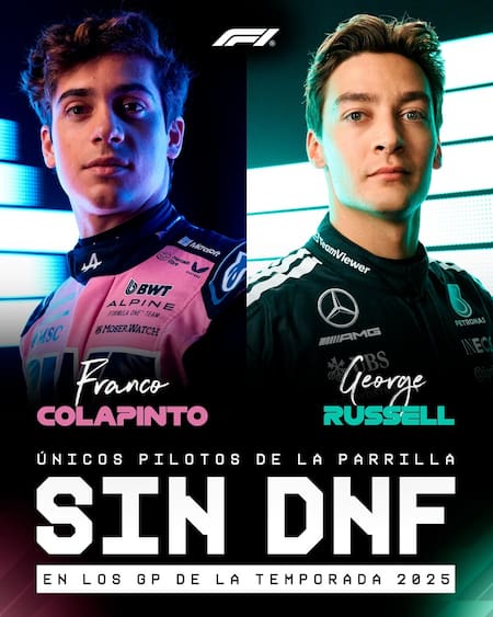 A pesar de su irregular desempeño con Alpine, el argentino Franco Colapinto y el británico George Russell (Mercedes) fueron los únicos dos pilotos de la parrilla sin DNF. ¿Qué significa esto? Significa que finalizaron todas las carreras de la temporada 2025.