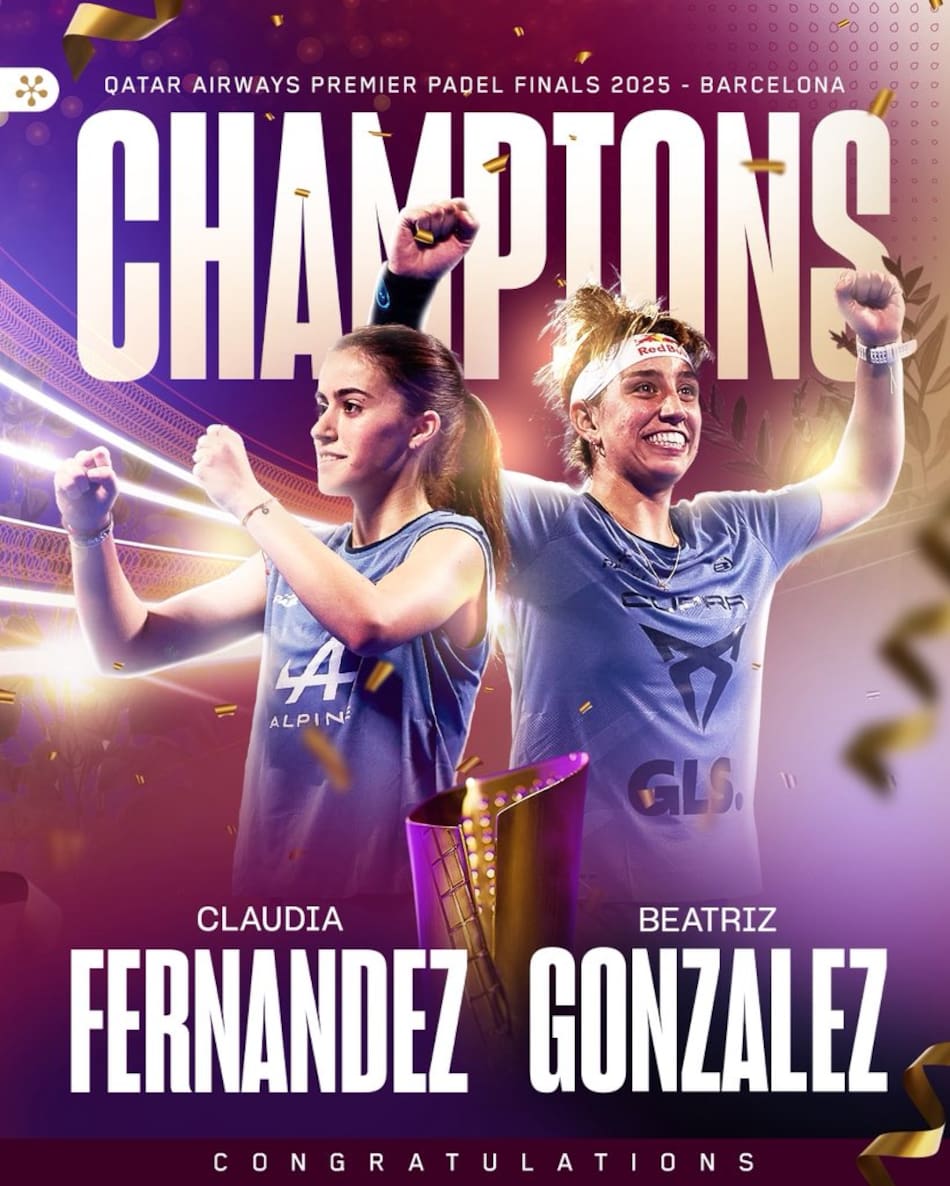 Claudia Fernández y Beatriz González cerraron un 2026 brillante tras vencer por 6-4, 0-6 y 6-3 a Delfina Brea y Gemma Triay en la final del Premier Pádel Finals 2025 - Barcelona.