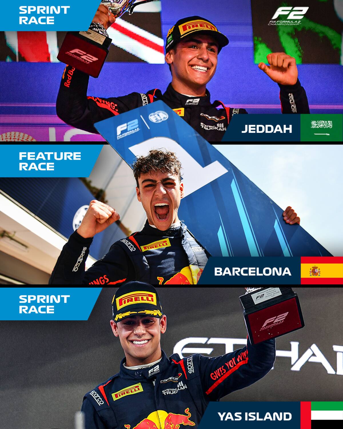 En su histórico ascenso a la máxima categoría, también se convirtió en el ganador más joven de la historia en Fórmula 2, luego de terminar primero en la carrera sprint del Gran Premio de Jeddah, en 2025. Además, es el piloto más joven en conseguir una pole-position en F2.