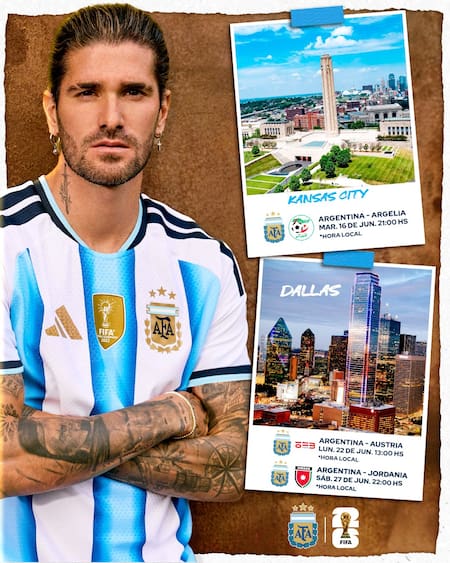 - Argentina vs. Argelia: martes 16 de junio, a partir de las 21:00 (hora argentina), en el estadio GEHA Field at Arrowhead, de Kansas City.
