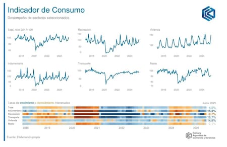 El consumo de los hogares en bienes y servicios finales volvió a recuperarse y mostró una suba interanual del 4% en junio, según el Indicador de Consumo (IC) de la Cámara Argentina de Comercio y Servicios (CAC).