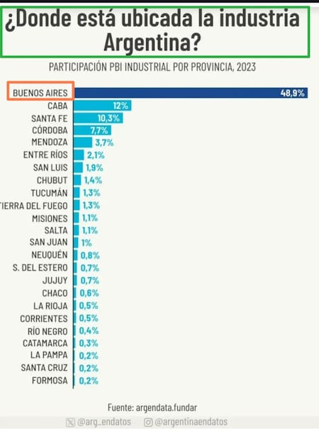 “Si algo nos distinguió fue la industrialización generada durante la Segunda Guerra Mundial, con el despegue y consolidación a partir del peronismo. Casi el 50% de las industrias están en la Pcia de Bs As (@arg_endatos), y de ellas la inmensa mayoría en el cinturón industrial, despectivamente llamado “Conurbano”“, criticó en su cuenta de la red social X.