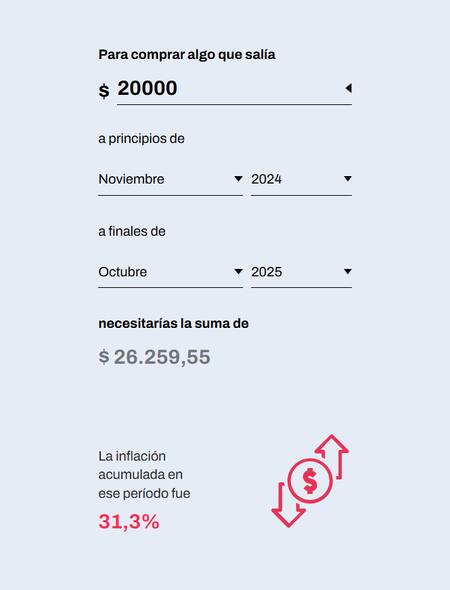 Se calcula, según datos oficiales, que la inflación acumulada de principios de noviembre del 2024 a fines de octubre del 2025 es de 31,3%.