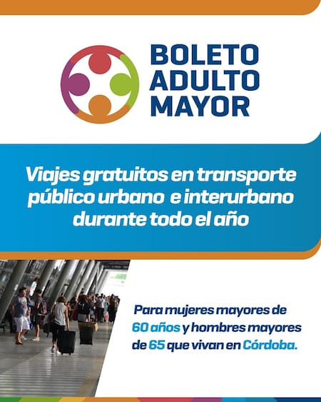 Los jubilados y pensionados que viven en la provincia de Córdoba pueden acceder al Boleto Adulto Mayor (BAM). El beneficio les permite viajar gratis en el transporte público urbano e interurbano durante todo el año.