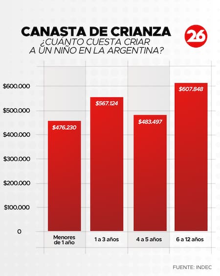 El Instituto Nacional de Estadística y Censos (INDEC) publicó la canasta de crianza correspondiente a enero de 2026 y reveló que el costo más alto se registra en el tramo de 6 a 12 años.
