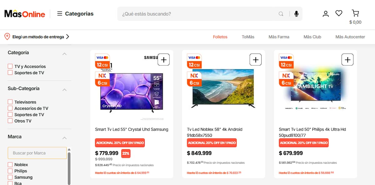 A su vez, las promociones reflejan una tendencia clara: el acceso a cuotas sin interés se consolida como el principal motor de compra en electrónica.