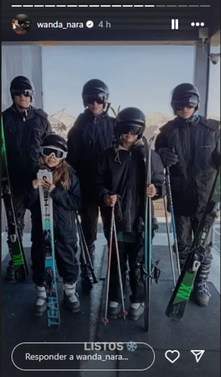 En otra publicación, se pueden ver a sus cinco hijos: Valentino, Constantino y Benedicto, nacidos durante su relación con Maxi López, junto a Francesca e Isabella, fruto de su matrimonio con Mauro Icardi. Todos vestidos con ropa de nieve, preparados para comenzar una jornada en la montaña.