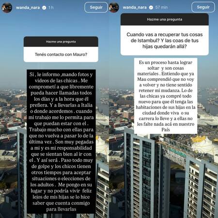 En relación al altercado ocurrido el pasado 27 de junio en el edificio Chateau Libertador, donde intervino personal policial y del SAME, Wanda expresó su compromiso con el bienestar emocional de sus hijas: