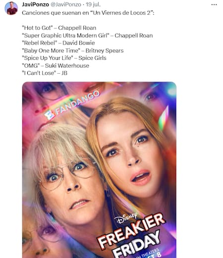 En las últimas horas, se filtró la lista de canciones que formarán parte de la película y rápidamente se volvió viral por incluir temas de bandas y artistas icónicos. Entre ellos, destacan Britney Spears y los Jonas Brothers.