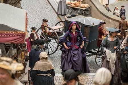 Desde el primer capítulo, Claire encarna esa idea. Es una mujer del siglo XX que, de forma inexplicable, viaja en el tiempo y termina en el siglo XVIII en Escocia. Allí es una completa extraña: no pertenece a esa época, no entiende sus códigos, ni es parte de ese mundo. Pero también es una forastera emocional, cultural y simbólica, incluso cuando empieza a formar lazos con Jamie y los demás.