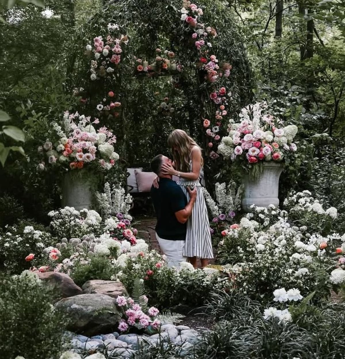 En un tierno posteo en conjunto, la cantante pop y el jugador de fútbol americano retrataron como fue la pedida de mano en un romántico jardín, rodeado de flores y plantas. “Tu profesora de inglés y tu profesor de gimnasia se van a casar”, escribieron, bromeando con sus fans.