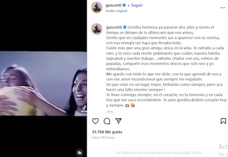 En ese sentido, Conti publicó un video y recordó a Silvina Luna. “Gordita hermosa ya pasaron dos años y siento que el tiempo se detuvo desde la última vez que nos vimos”, empezó escribiendo.