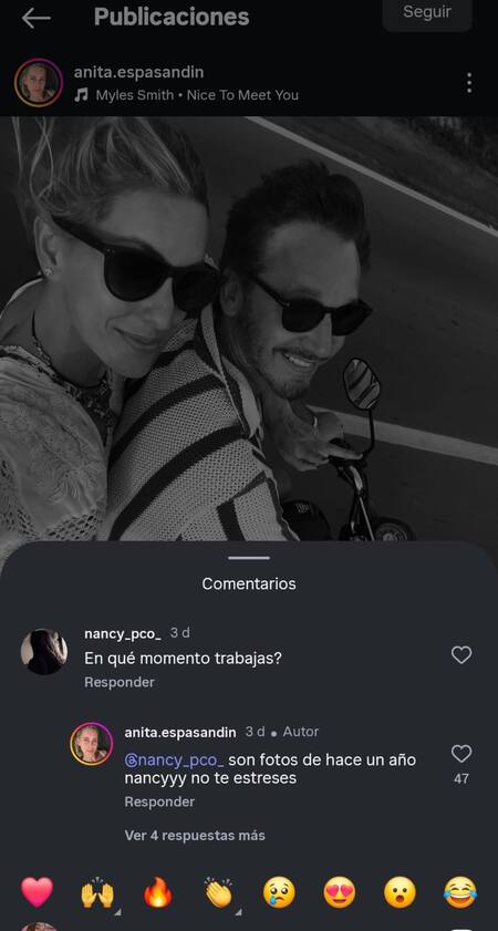 Una picante reacción de Anita Espasandin, la actual novia de Benjamín Vicuña, se volvió viral en las últimas horas luego de que una usuaria le dijera que el actor chileno sigue enamorado de Pampita, su ex y mamá de tres de sus hijos varones.