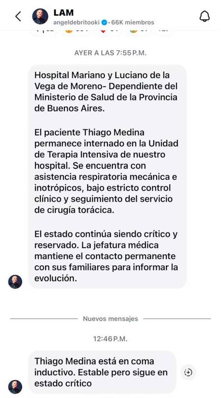 Ahora, Ángel de Brito agregó una actualización sobre la salud de Thiago Medina: