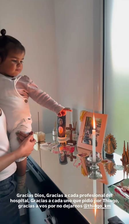 La exparticipante de Gran Hermano compartió en sus redes sociales el altar que armó en su casa y mostró cómo sus gemelas rezaban por su papá, quien sufrió un accidente de moto el pasado 12 de septiembre.