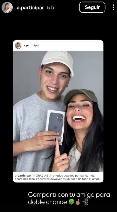 Lo que sucedió, fue que Thiago promocionó el sorteo de un iPhone, pero las condiciones para participar son polémicas. “Gracias a todos ustedes por bancarnos. Ahora nos toca a nosotros devolverles un poco de todo el amor que nos mandan. Se va otro teléfono. Para participar seguí a todas las cuentas que sigue esta cuenta (11 perfiles) y comentá lo que quieras”, se lee en la publicación.
