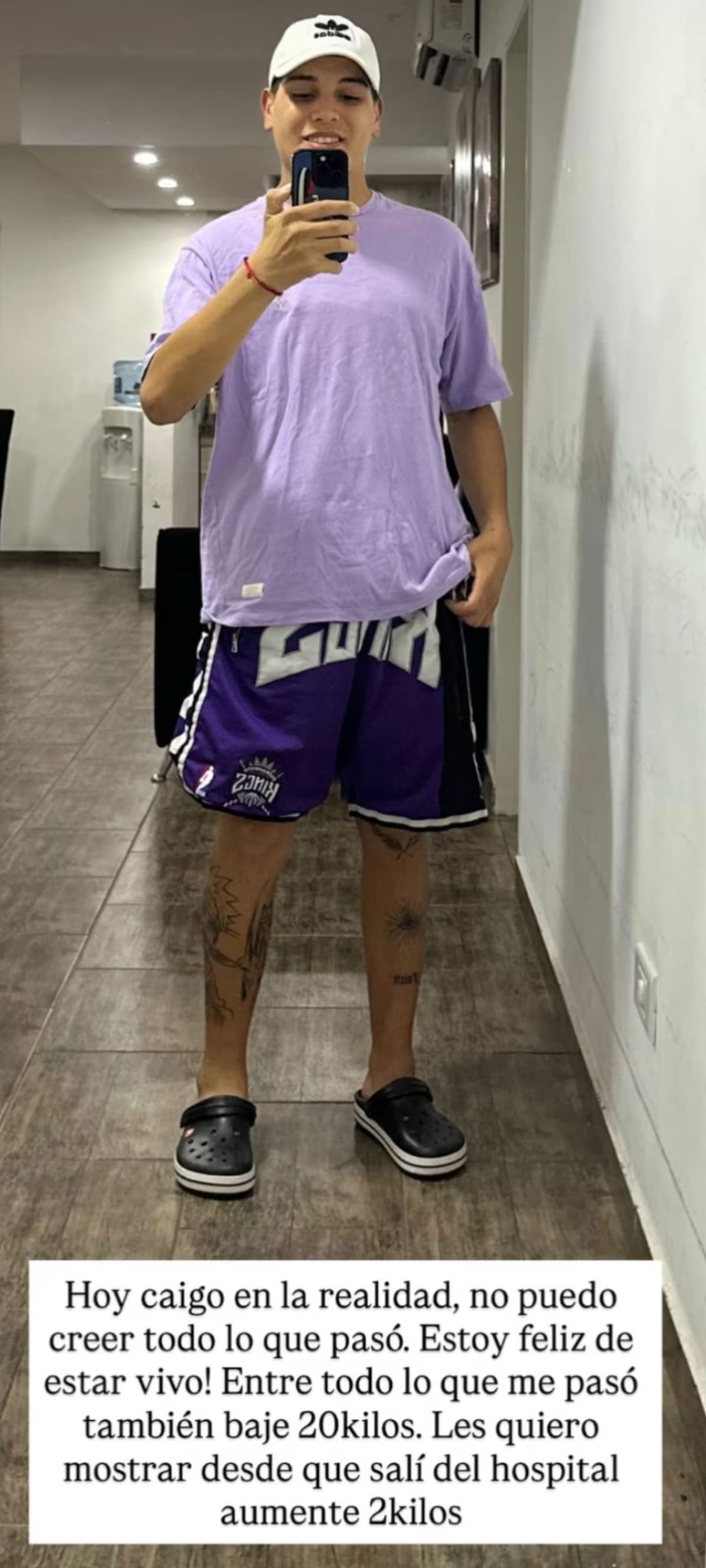 Luego, añadió: “Entre todo lo que me pasó, también bajé 20 kilos. Les quiero mostrar que desde que salí del hospital aumenté 2 kilos”.
