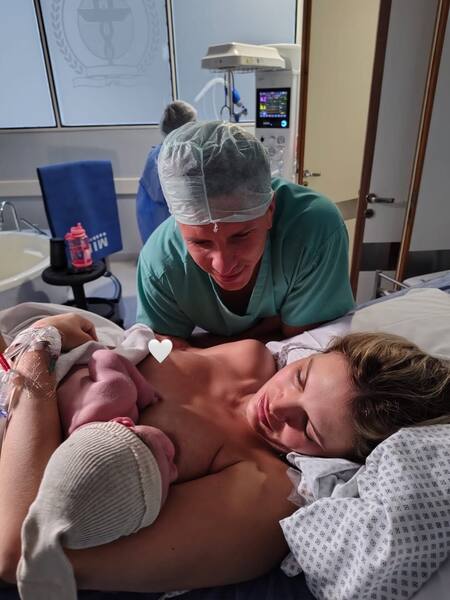 La modelo y el futbolista mostraron la feliz llegada con postales familiares a segundos del parto, entre batas y sábanas de hospital, escribieron: “El día que conocimos al amor de nuestras vidas. Bienvenido Faustino. 4,085 kg de puro amor”.